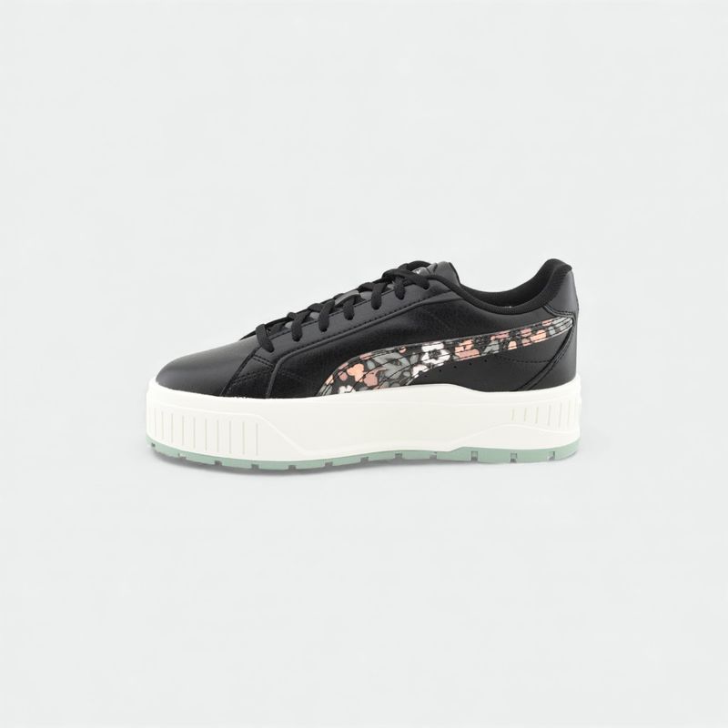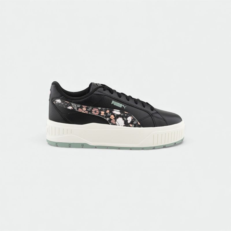 Presenta la franja clásica de Puma en el lateral, rellena con un estampado de piel (serpiente o animal print) en tonos pastel y negro.