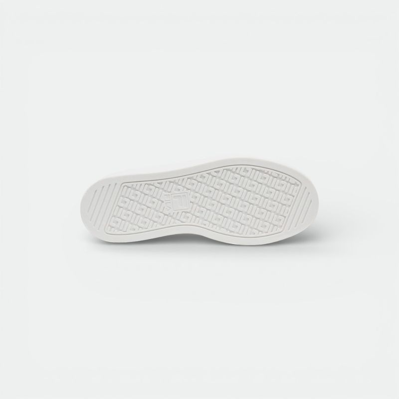 Posee una suela de plataforma alta y plana en color blanco, diseñada para brindar altura y una pisada estable.