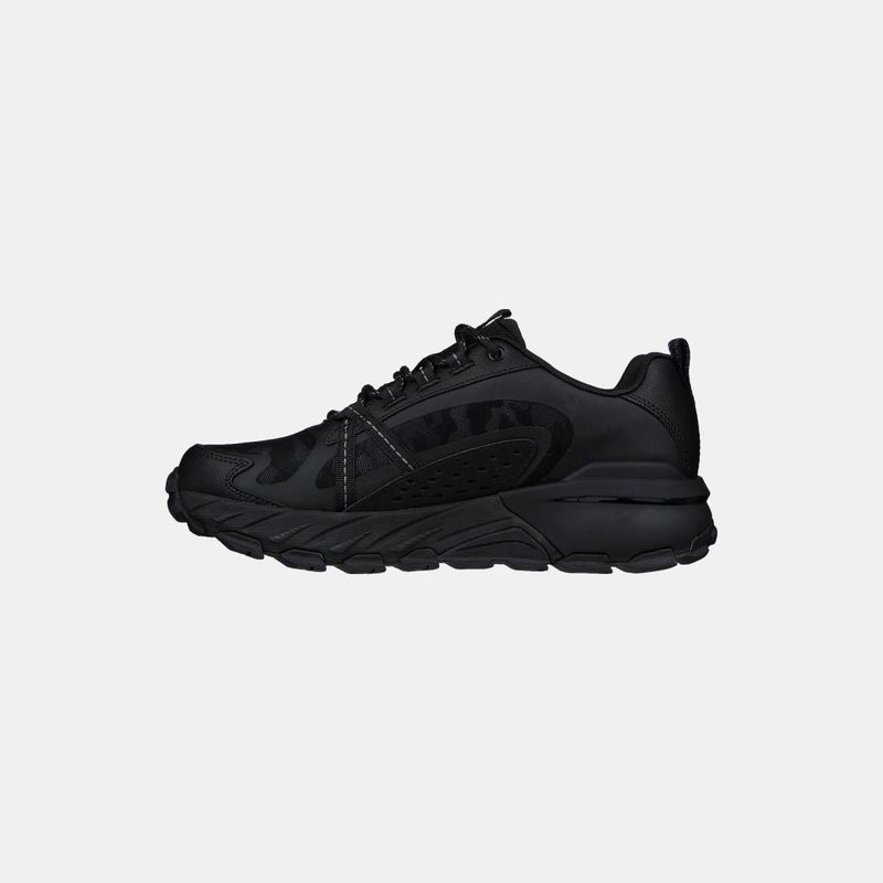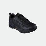 Este modelo con cordones para senderismo al aire libre cuenta con una parte superior de cuero y material sintético repelente al agua con tratamiento 3M® Scotchgard®, una plantilla Skechers Air-Cooled Memory Foam® y una suela exterior antideslizante Goodyear® de alto rendimiento.