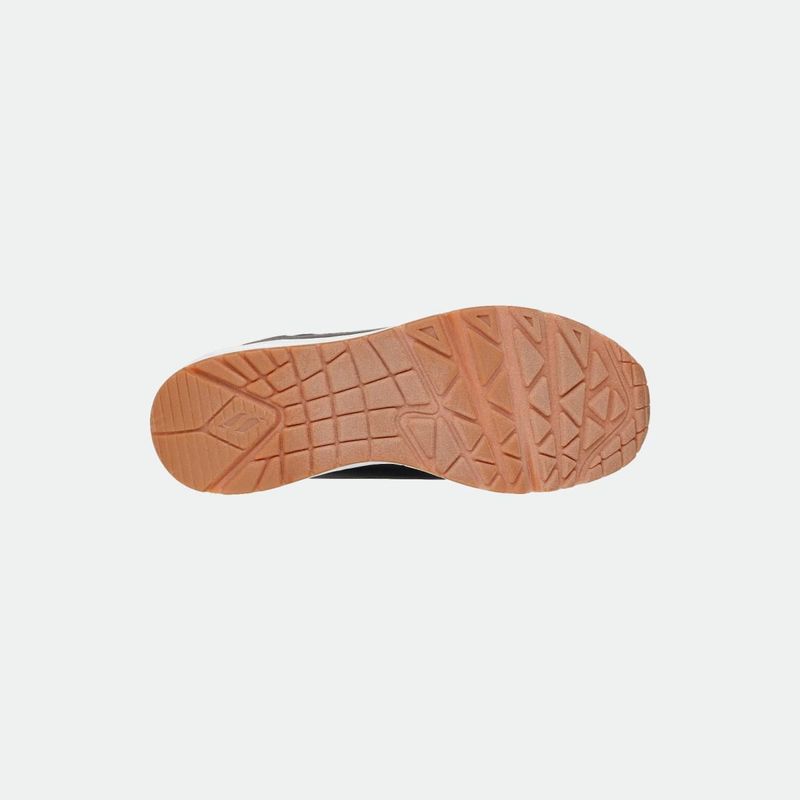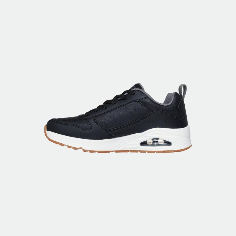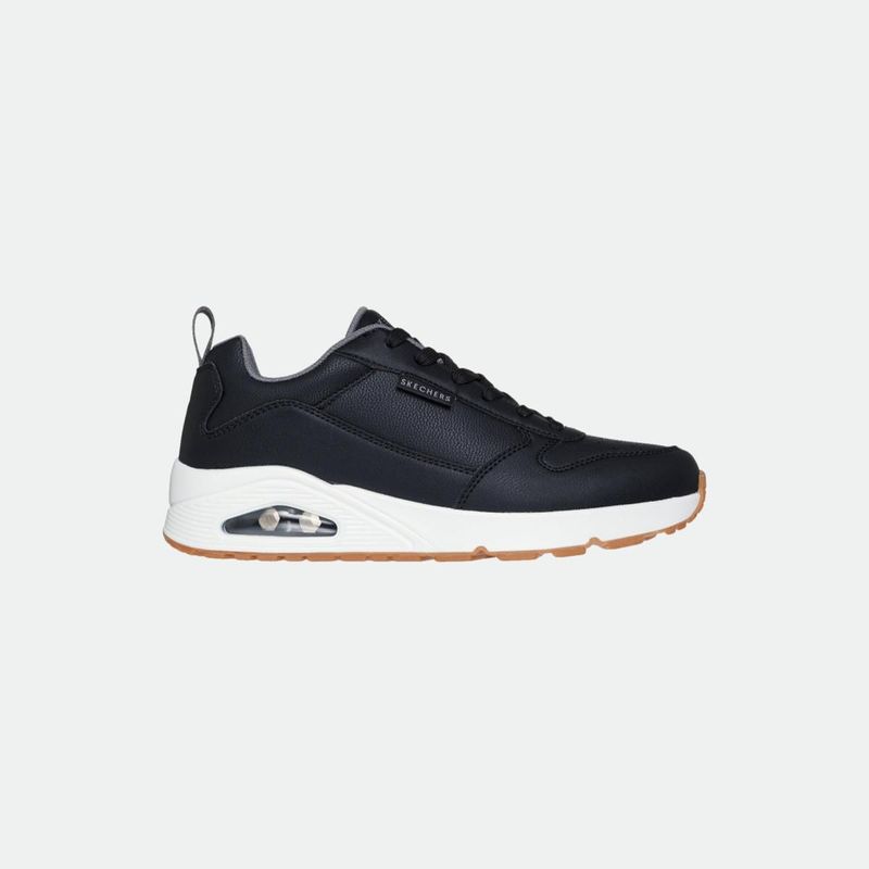 Esta zapatilla con cordones presenta una parte superior de cuero sintético con una plantilla Skechers Air-Cooled Memory Foam® y una entresuela con airbag visible Skech-Air.