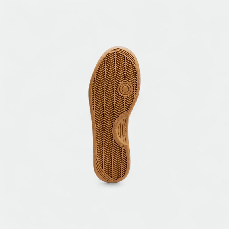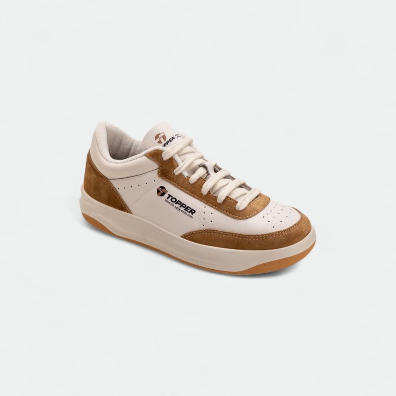 Capellada: descarne natural y cuero vacuno natural. Con detalles de branding estampado y pieza de lengua al corte que logra un calce fácil y rápido y un andar muy suave y cómodo.