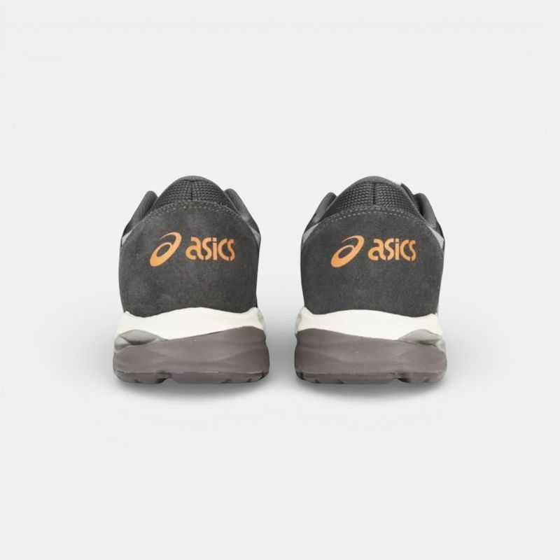 Detalles Distintivos: Logotipo de Asics bordado en el talón en un color naranja cobrizo que aporta un detalle de visibilidad y estilo.