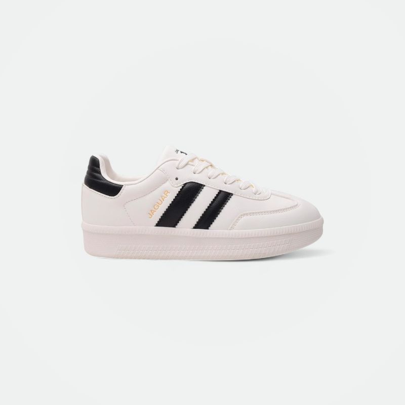 Presenta una etiqueta distintiva de la marca Jaguar en la lengüeta.