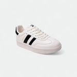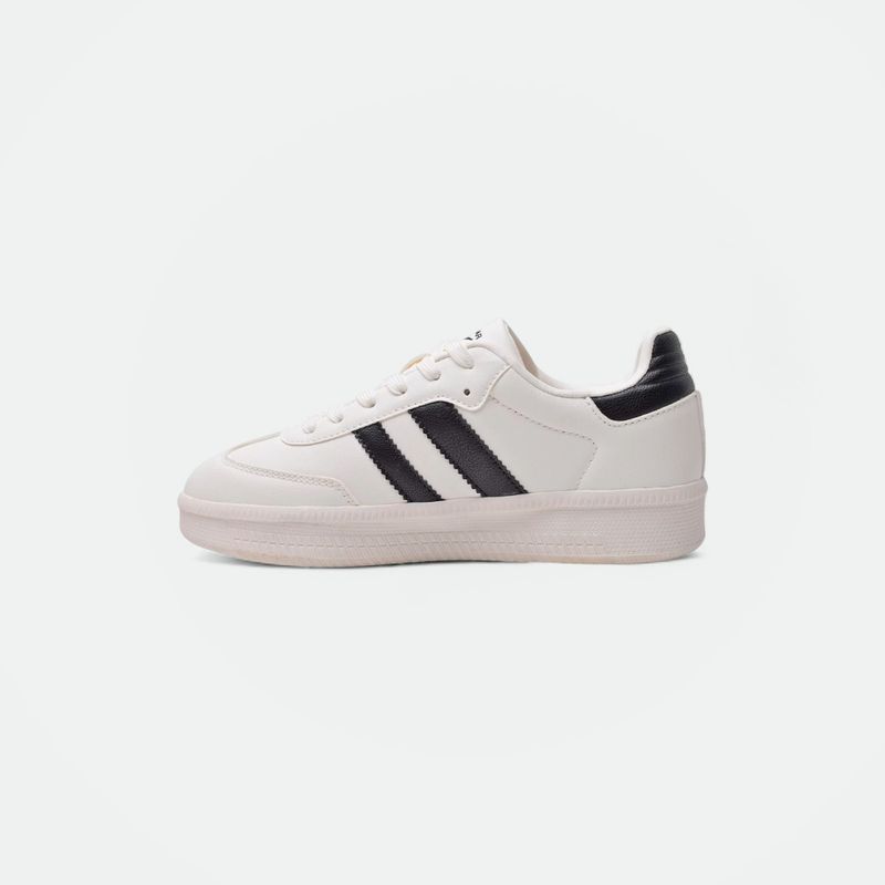 Posee una suela de plataforma ancha de goma blanca, que aporta altura sin sacrificar la estabilidad.