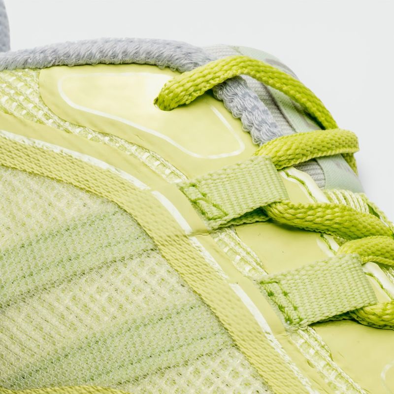 Presenta refuerzos laterales en forma de bandas sintéticas que mejoran el soporte durante los desplazamientos laterales bruscos.