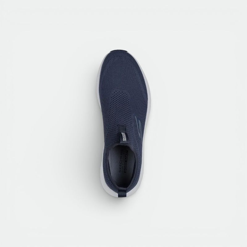 Capellada de Tejido de Punto Elástico: Confeccionada con un material textil ligero que se adapta a la forma del pie como una media, proporcionando transpirabilidad y flexibilidad.