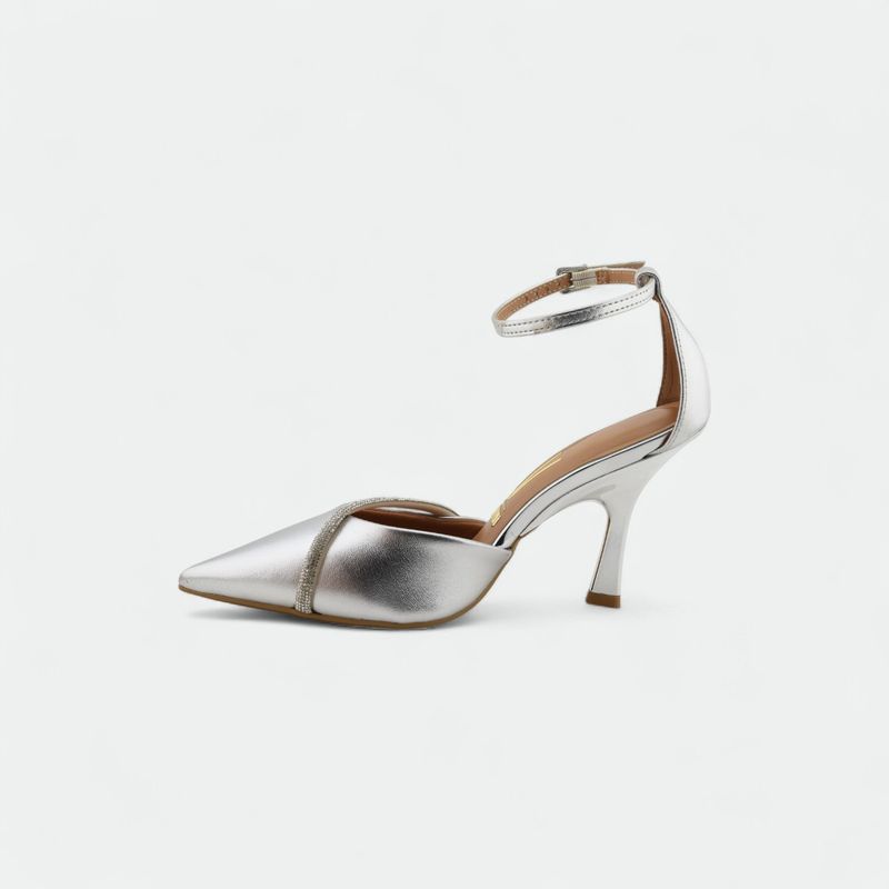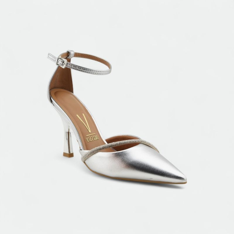Zapato de fiesta con taco fino y pulsera VIZZANO-PLATA BLANCO OFF