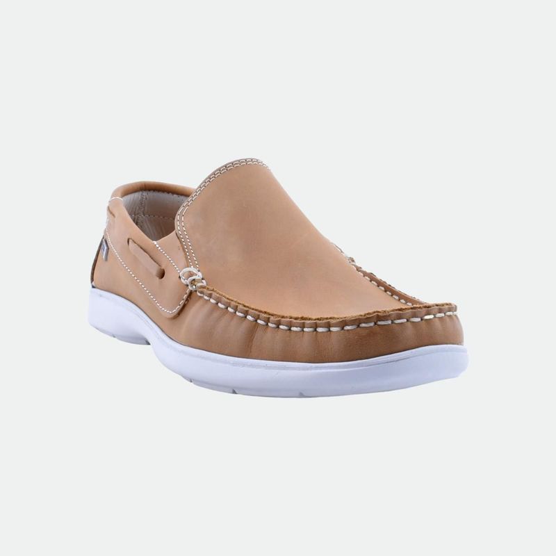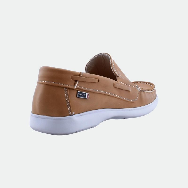 Mocasín de cuero vacuno con interior de tela, combinando elegancia y comodidad. Suela de poliuretano para un andar ligero y duradero. Un calzado versátil y elegante, perfecto para cualquier ocasión.