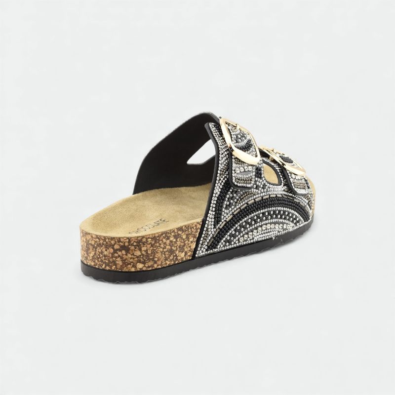 Zueco 2 hebillas strass-NEGRO PLATA
