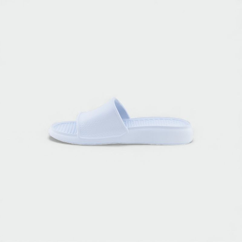 Estilo: Sandalia slide o de pala (zueco abierto) de diseño deportivo y minimalista, ideal para piscina o duchas.