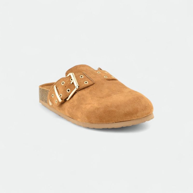 Zueco con hebilla cerrado mujer REFRESH-CAMEL